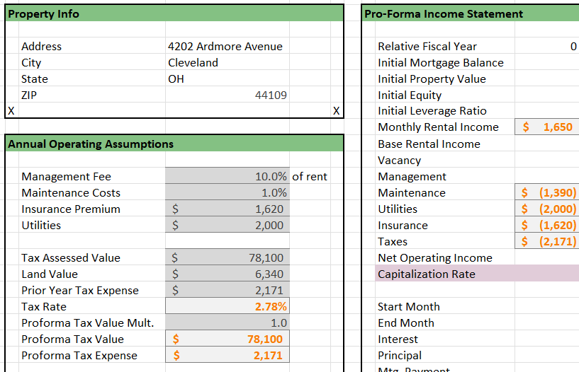 This model combines property details, user assumptions, and user benchmarks to estimate the value of a property. It combines a pro-forma income statment and leveraged return analysis to give the user the most information possible to make the right investment decision.